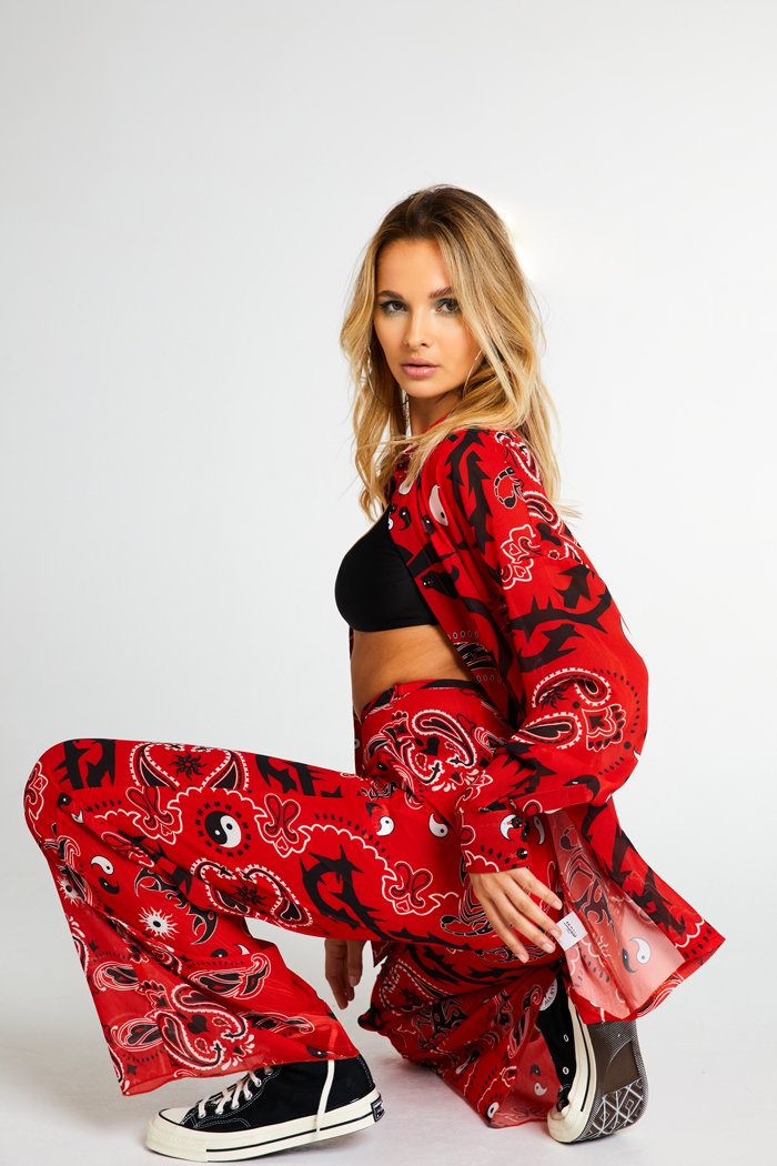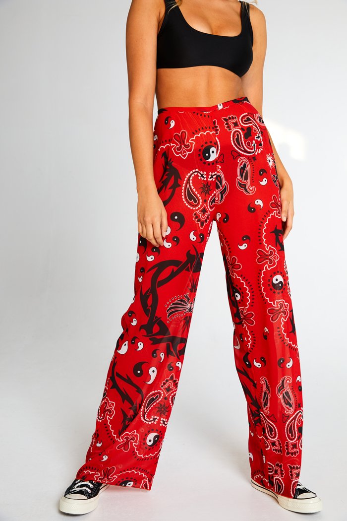 Paint the town red in our semi sheer Bandana Print Chiffon Trousers