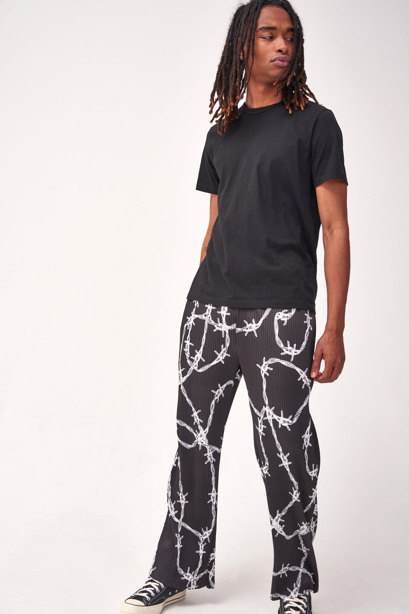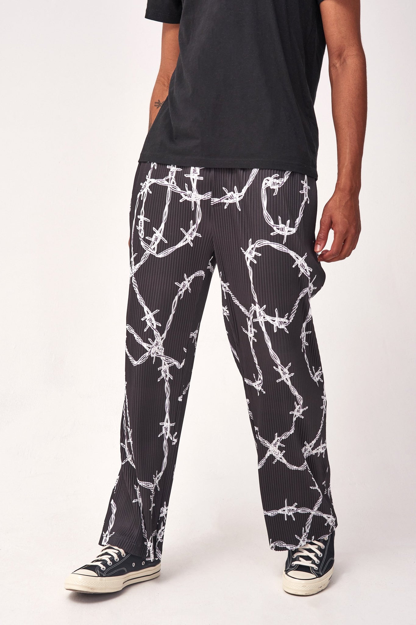 %text-1-start%Barbed Wire Printed Pleated Trousers