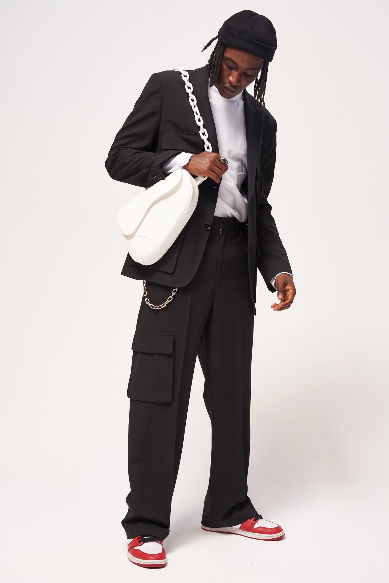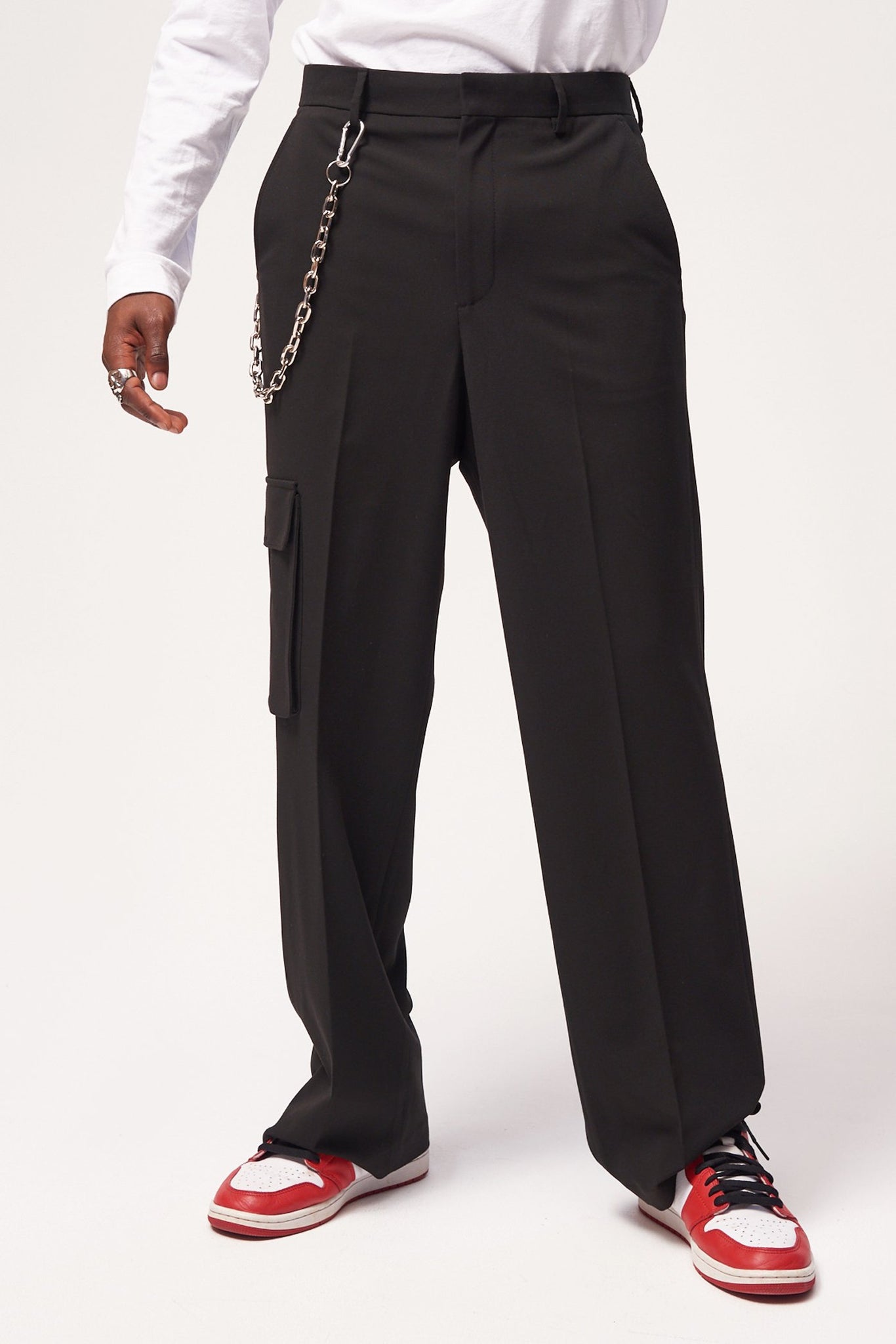 %text-1-start%Black Skate Fit Trousers With Utility Pockets