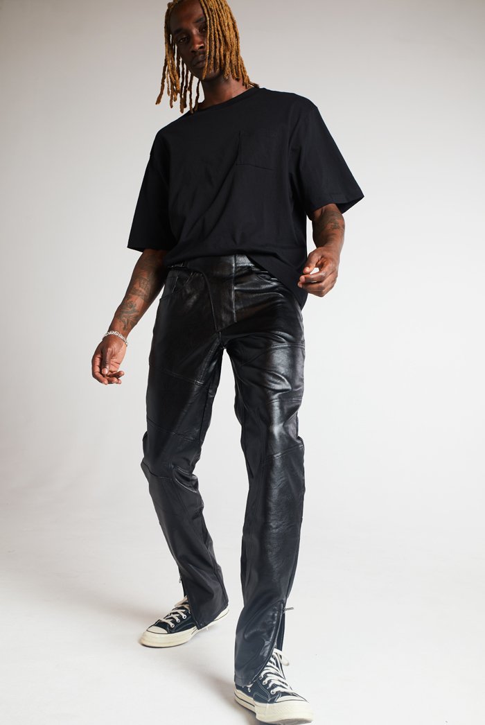 %text-1-start% Black Motocross Vegan Leather Trousers