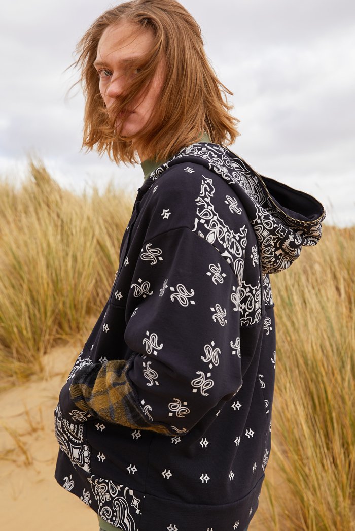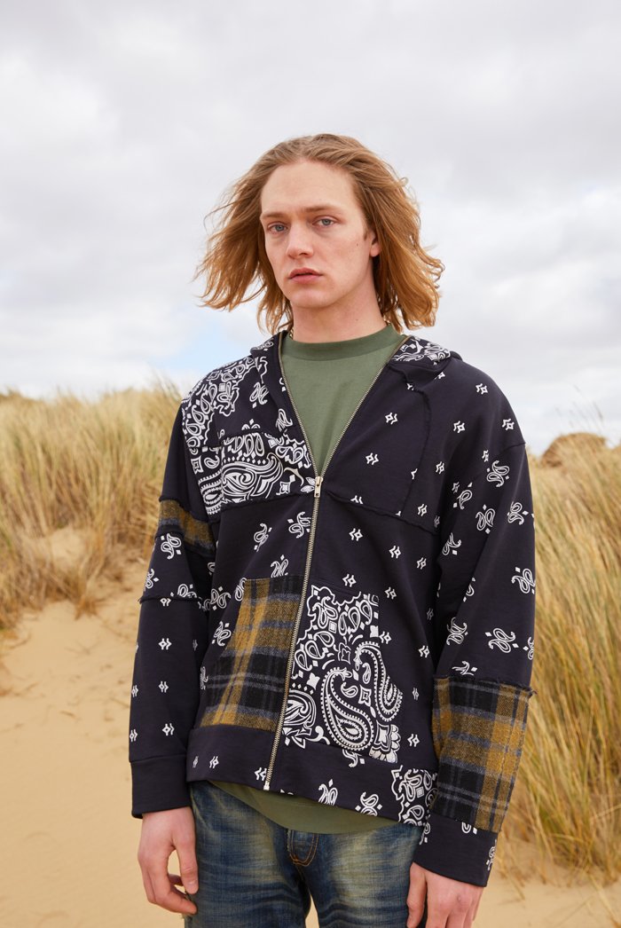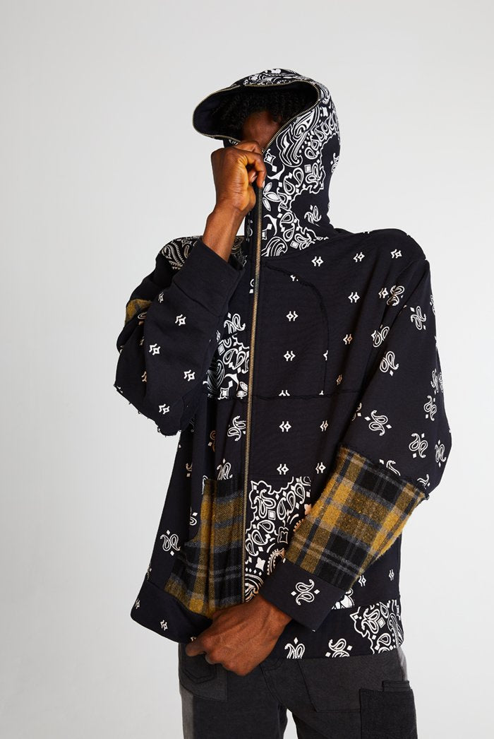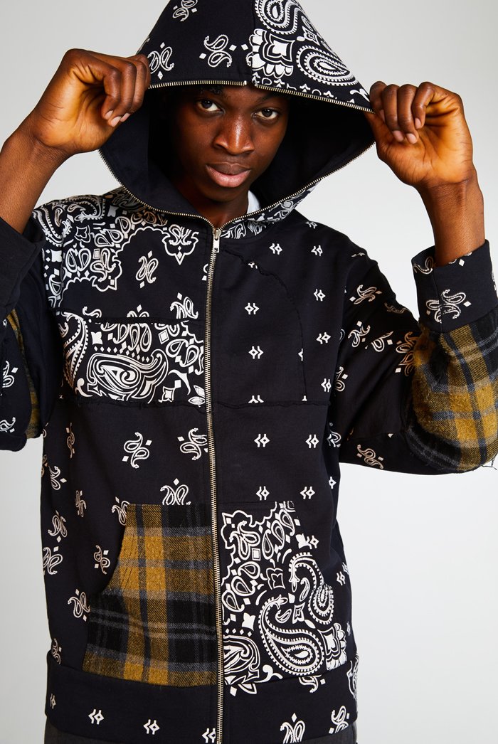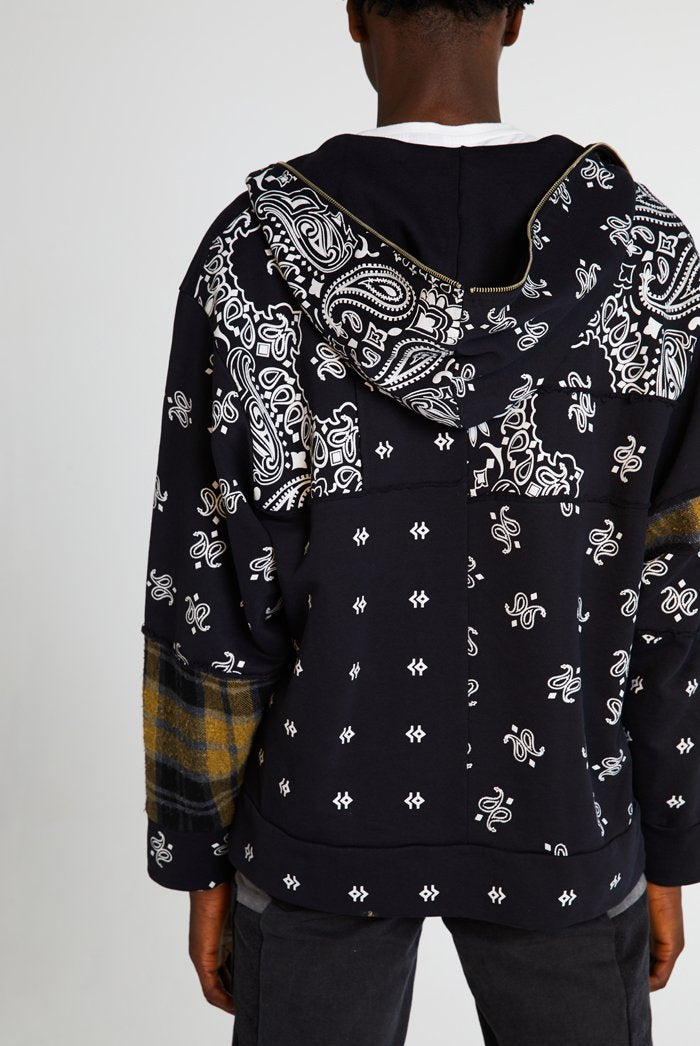 %text-1-start%Black Paisley Cut & Sew Zip Up Hoodie