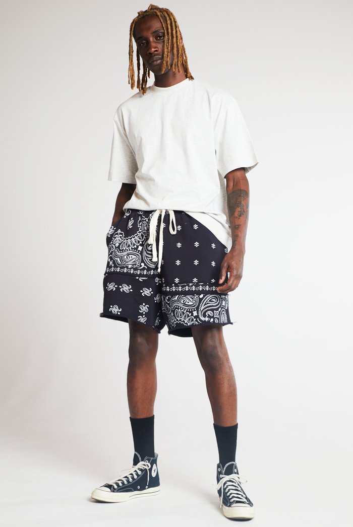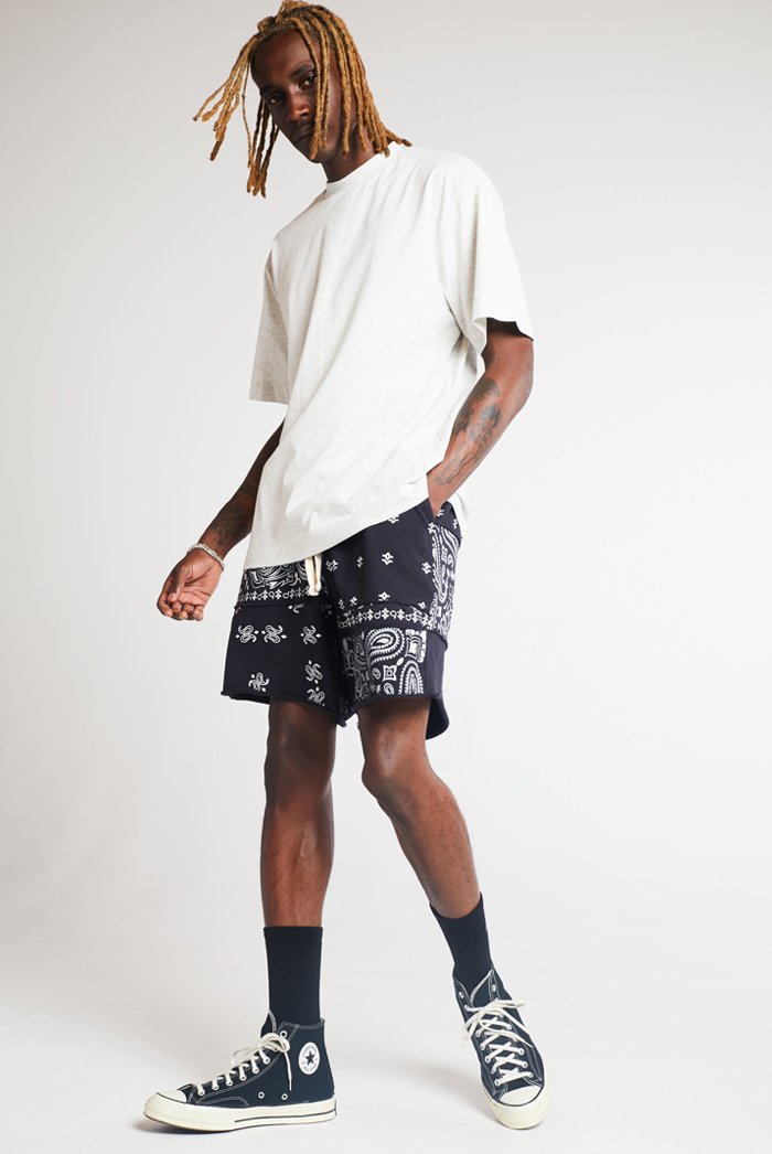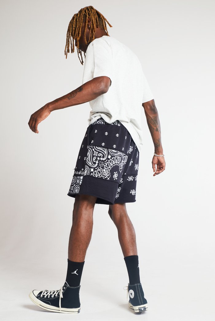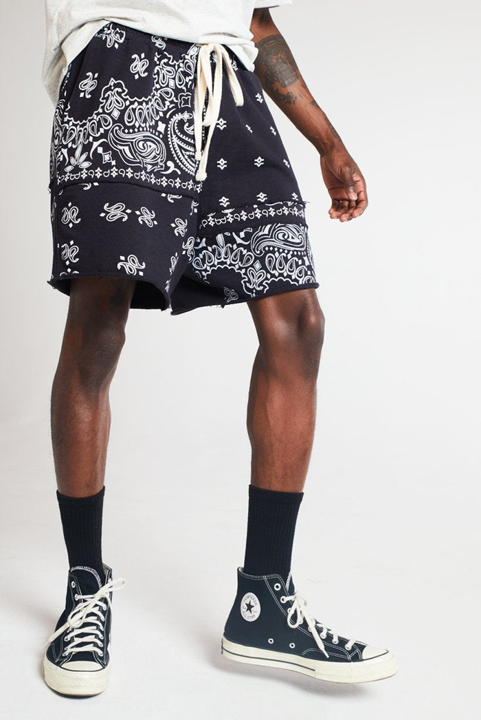 %text-1-start%Black Paisley Print Cut & Sew Shorts