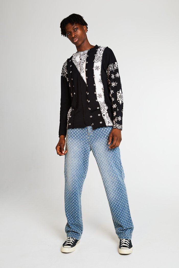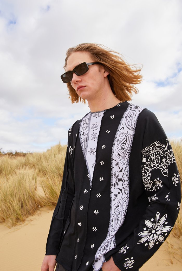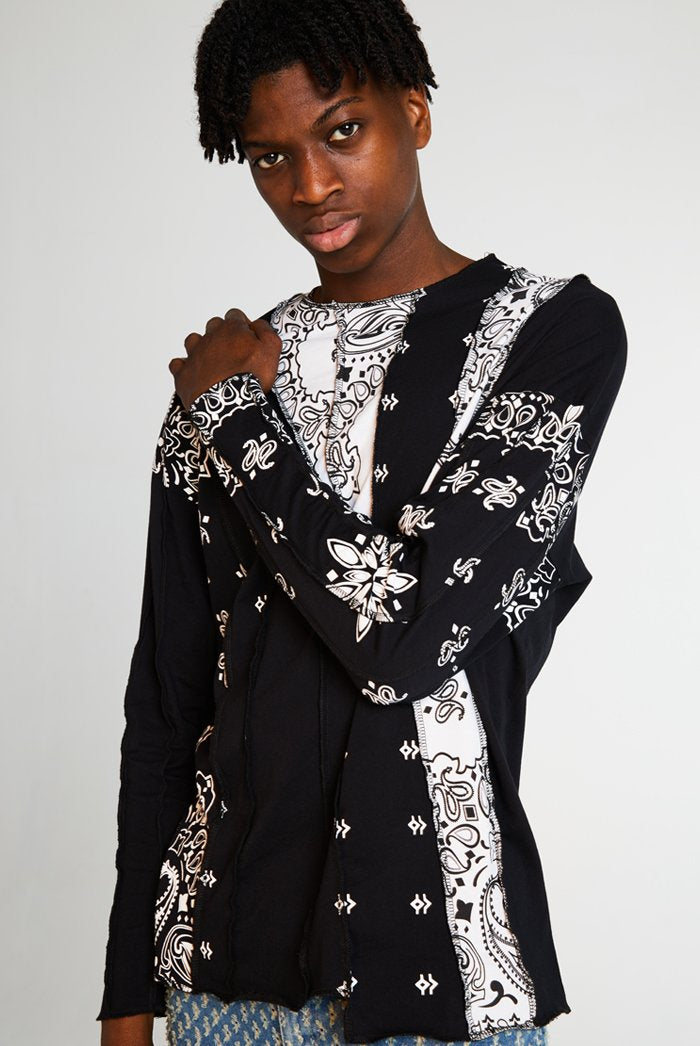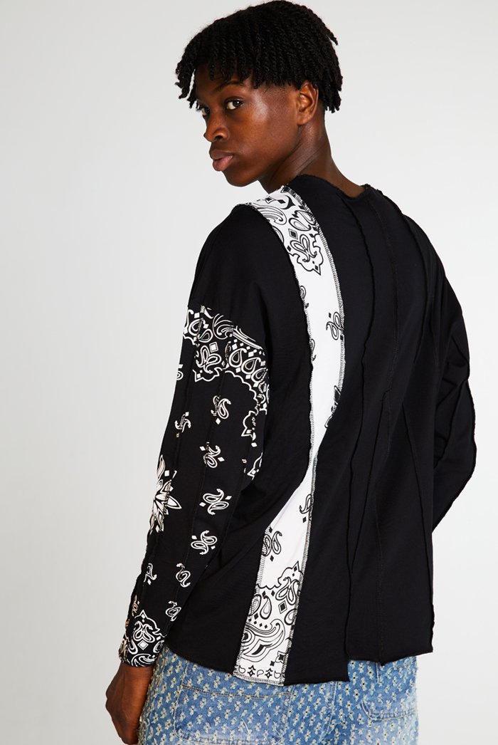 %text-1-start%Black & White Paisley Print Long Sleeve Top
