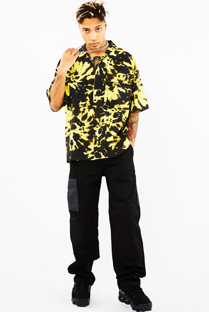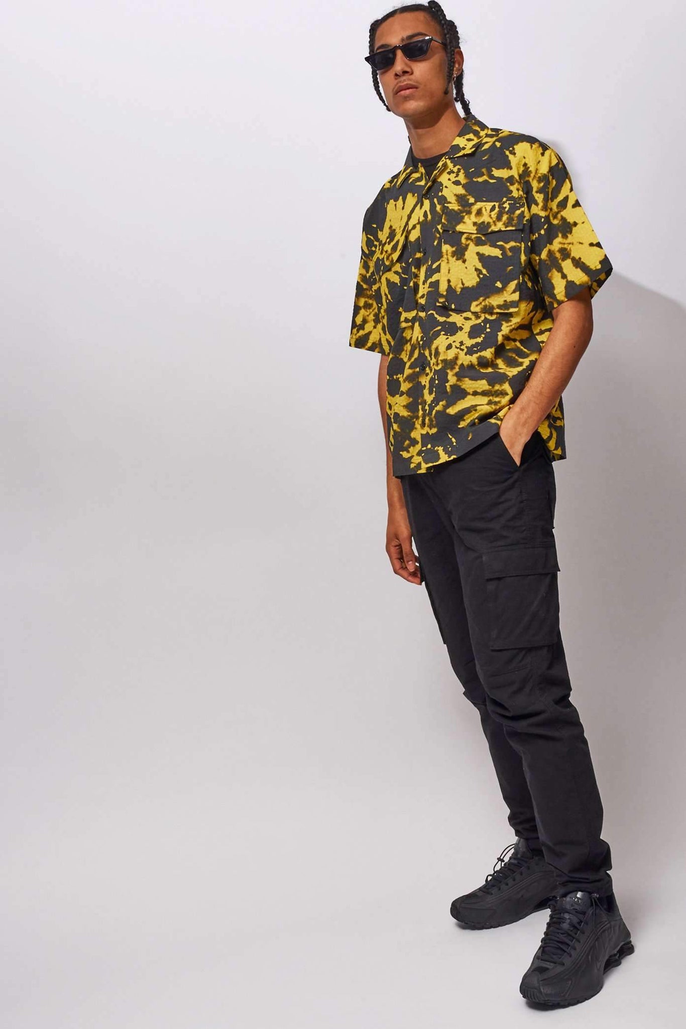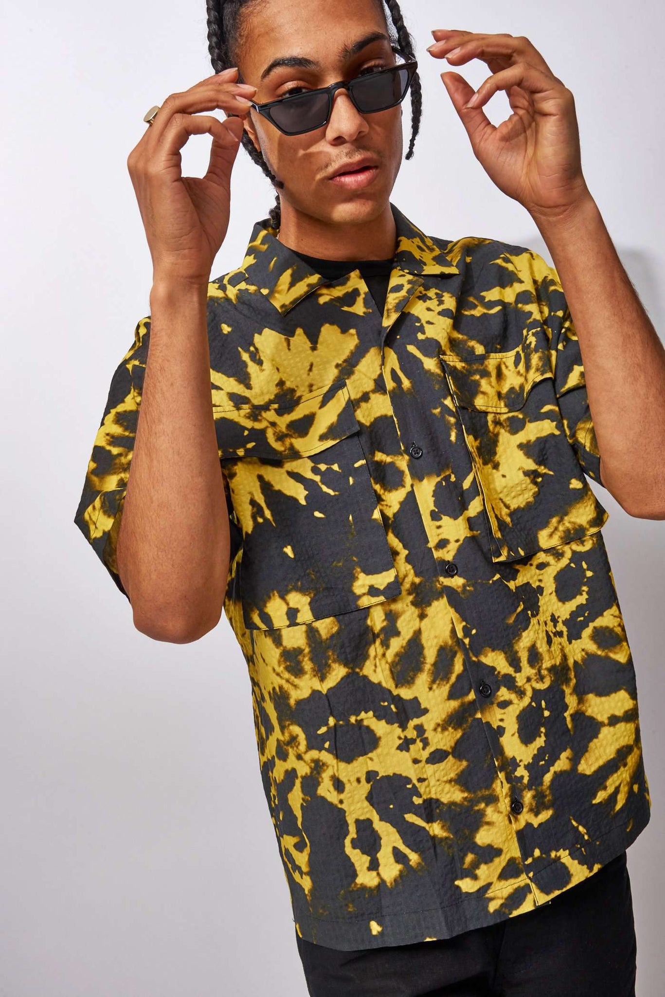 Black & Yellow Tie Dye Shirt With Utility Pockets