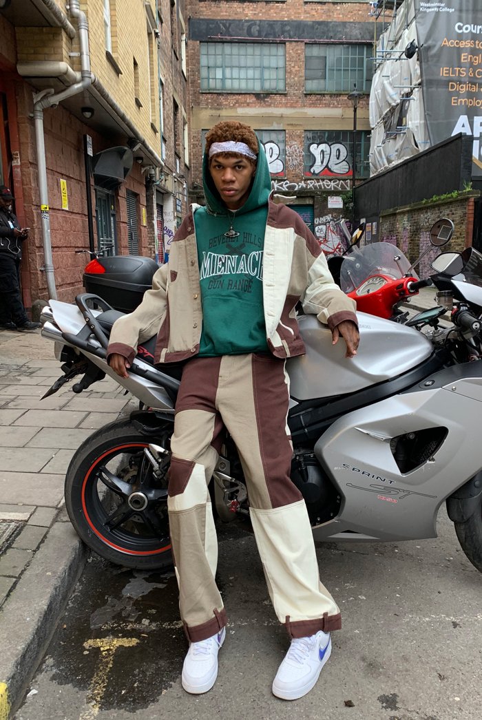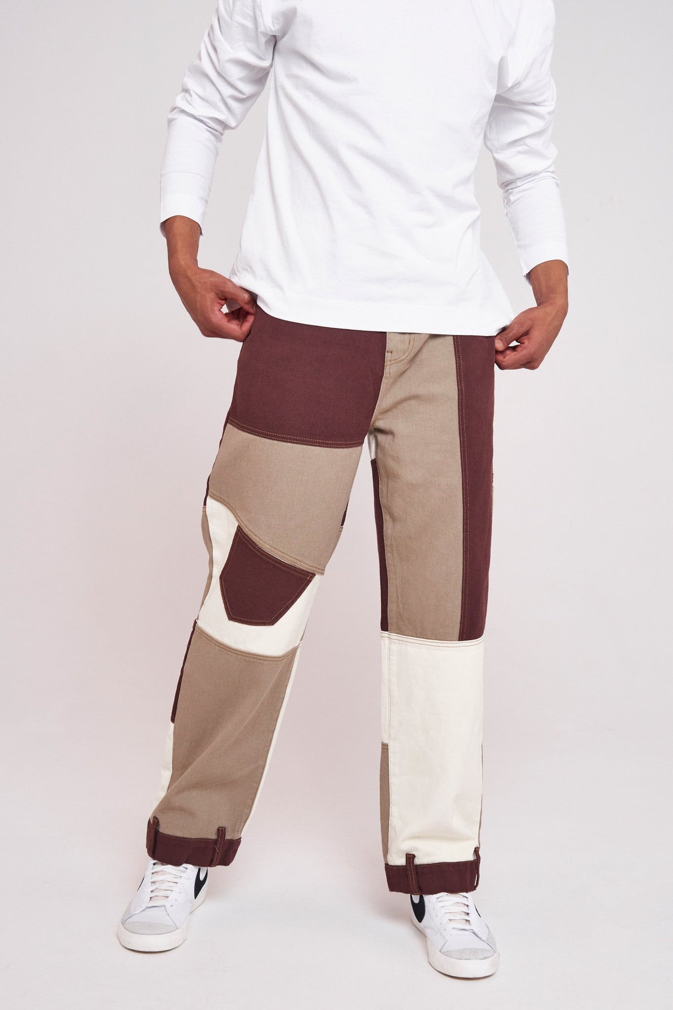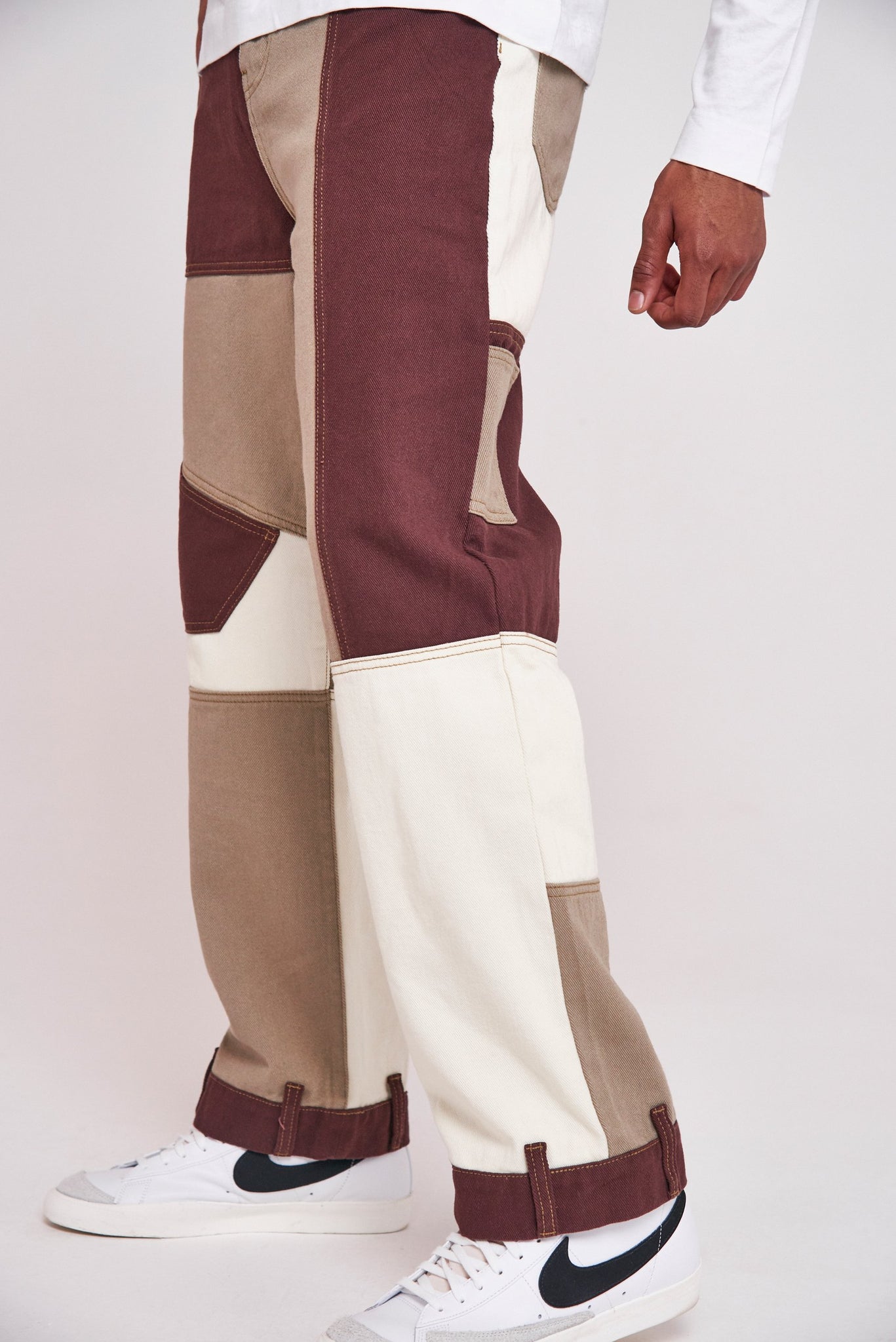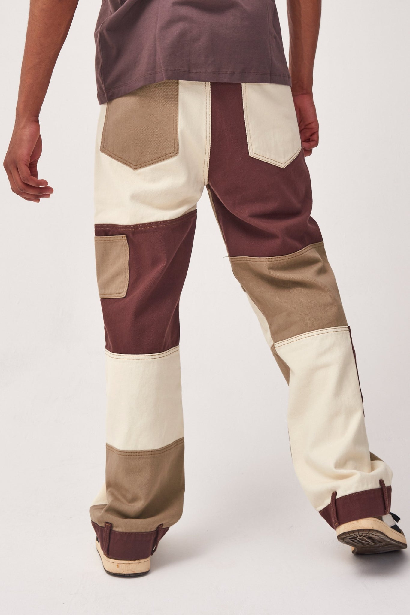 %text-1-start%Brown Patchwork Skate Jeans
