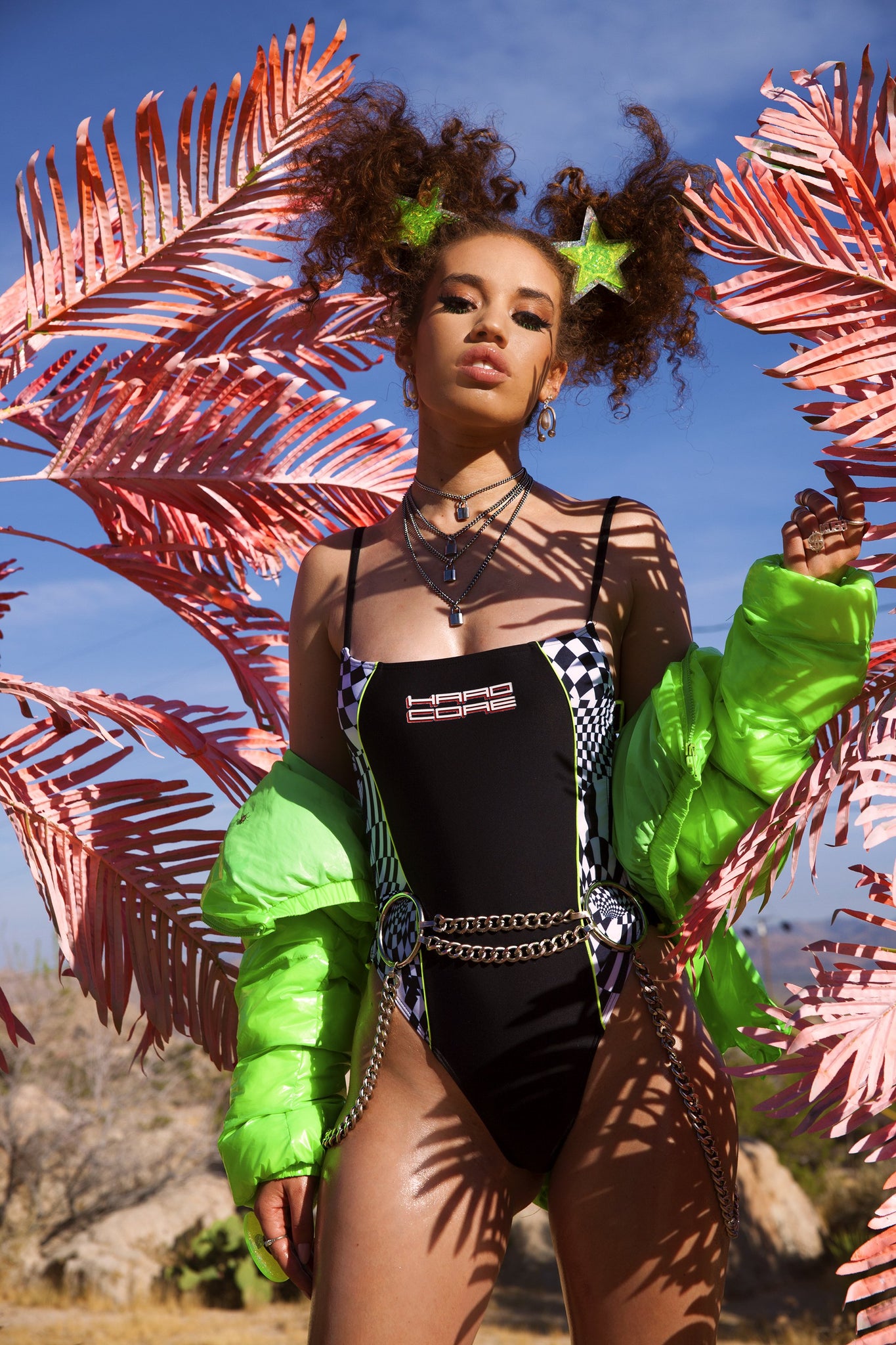 Check mate! Upgrade your swim with our checkerboard square neck swimsuit with side buckles!