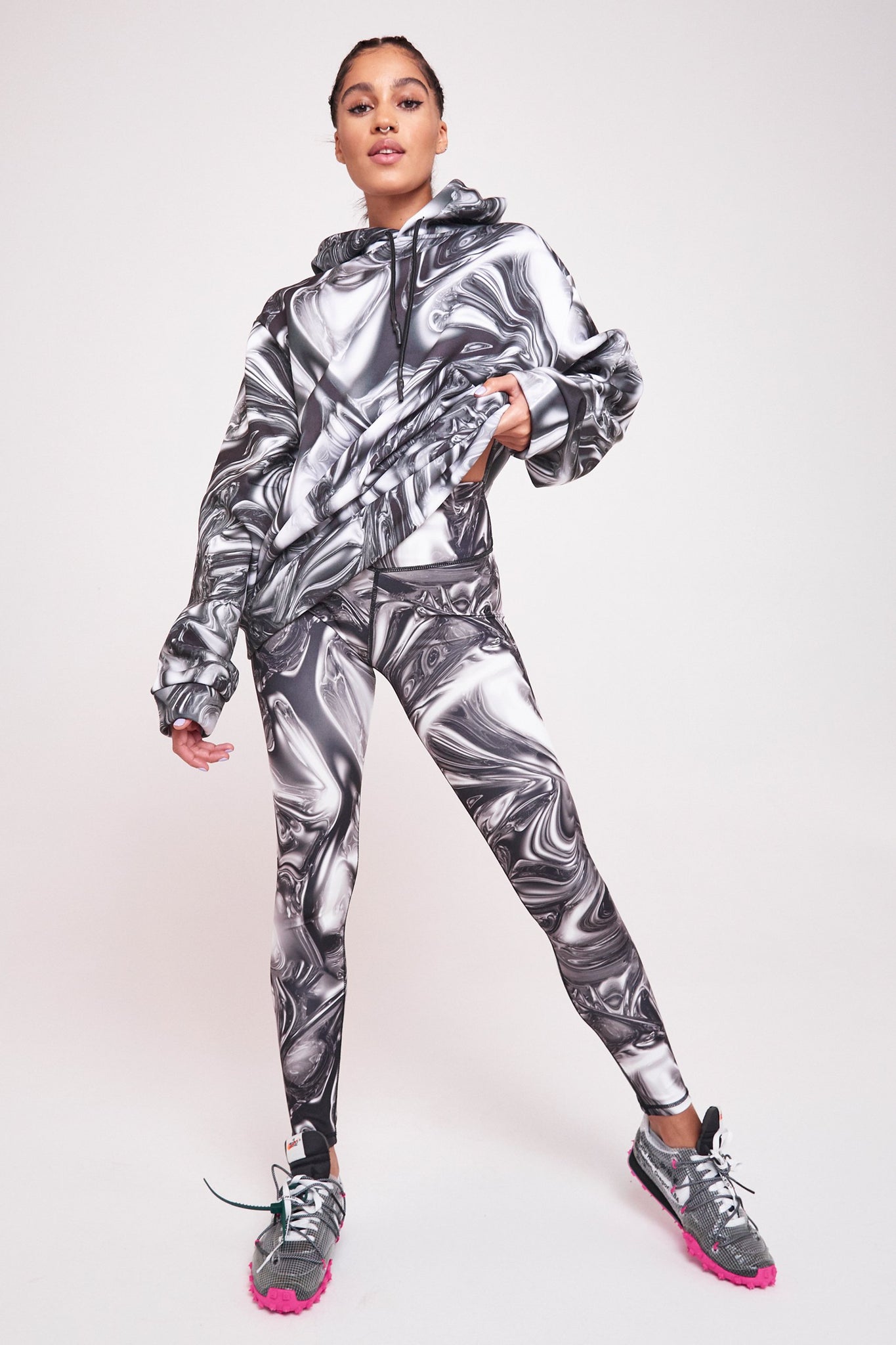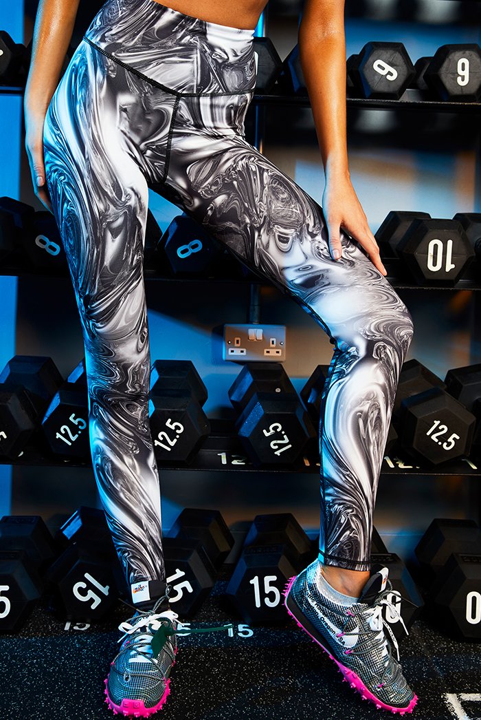 %text-1-start% Work out in style rocking our chrome print high waist leggings. Pair with the matching sports bra for a badass gym co-ord!