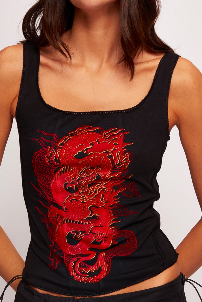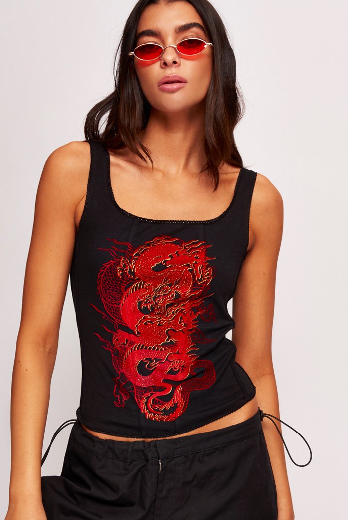 Be sure to slay this season rocking our super sassy dragon print foil & flock lace up crop top! Pair with the matching joggers and stay comfy in style