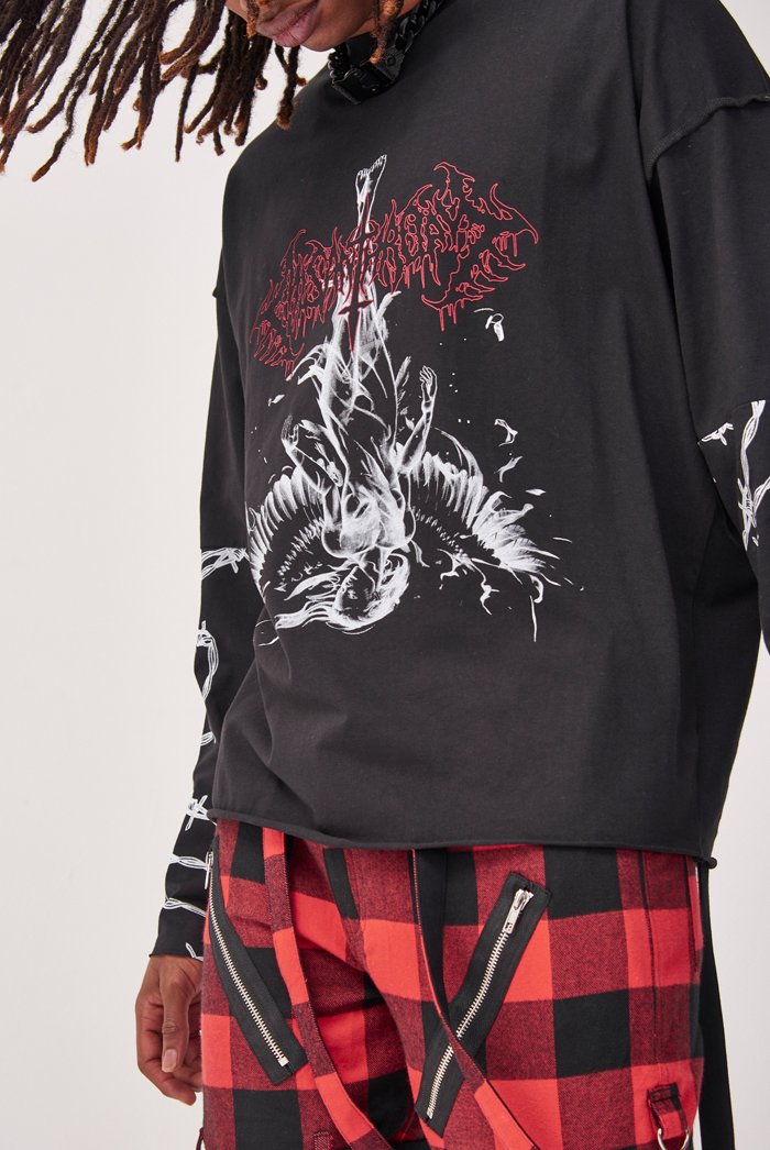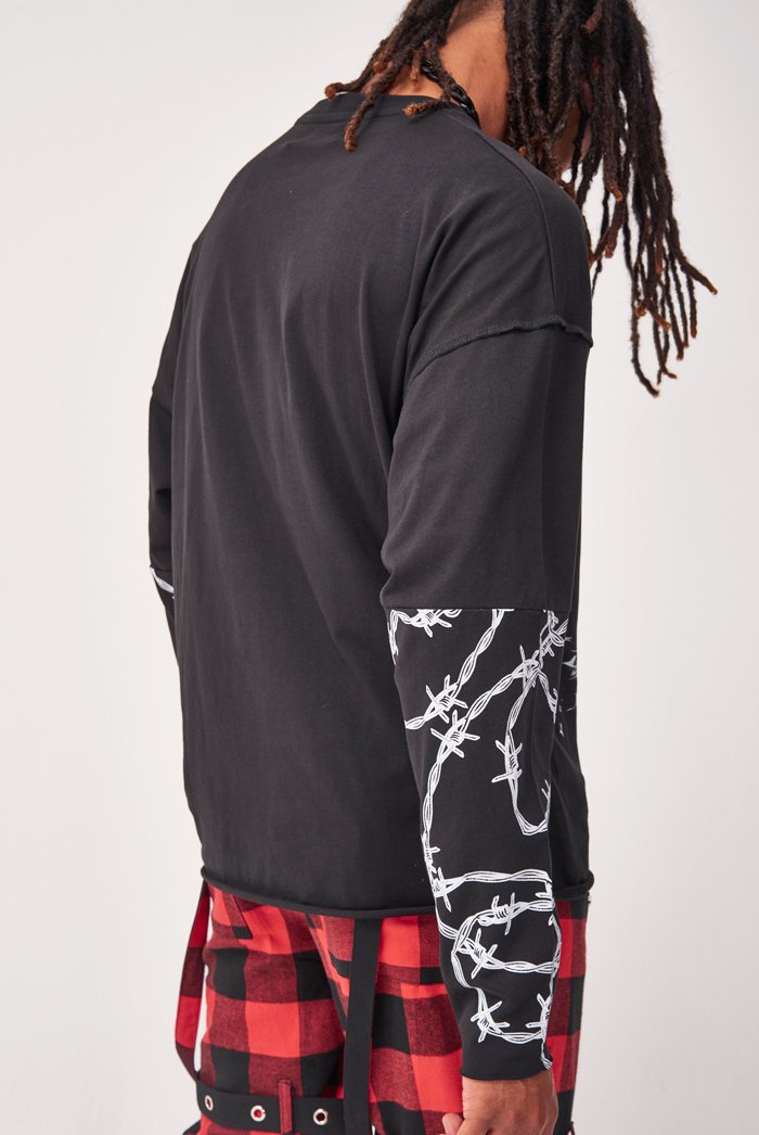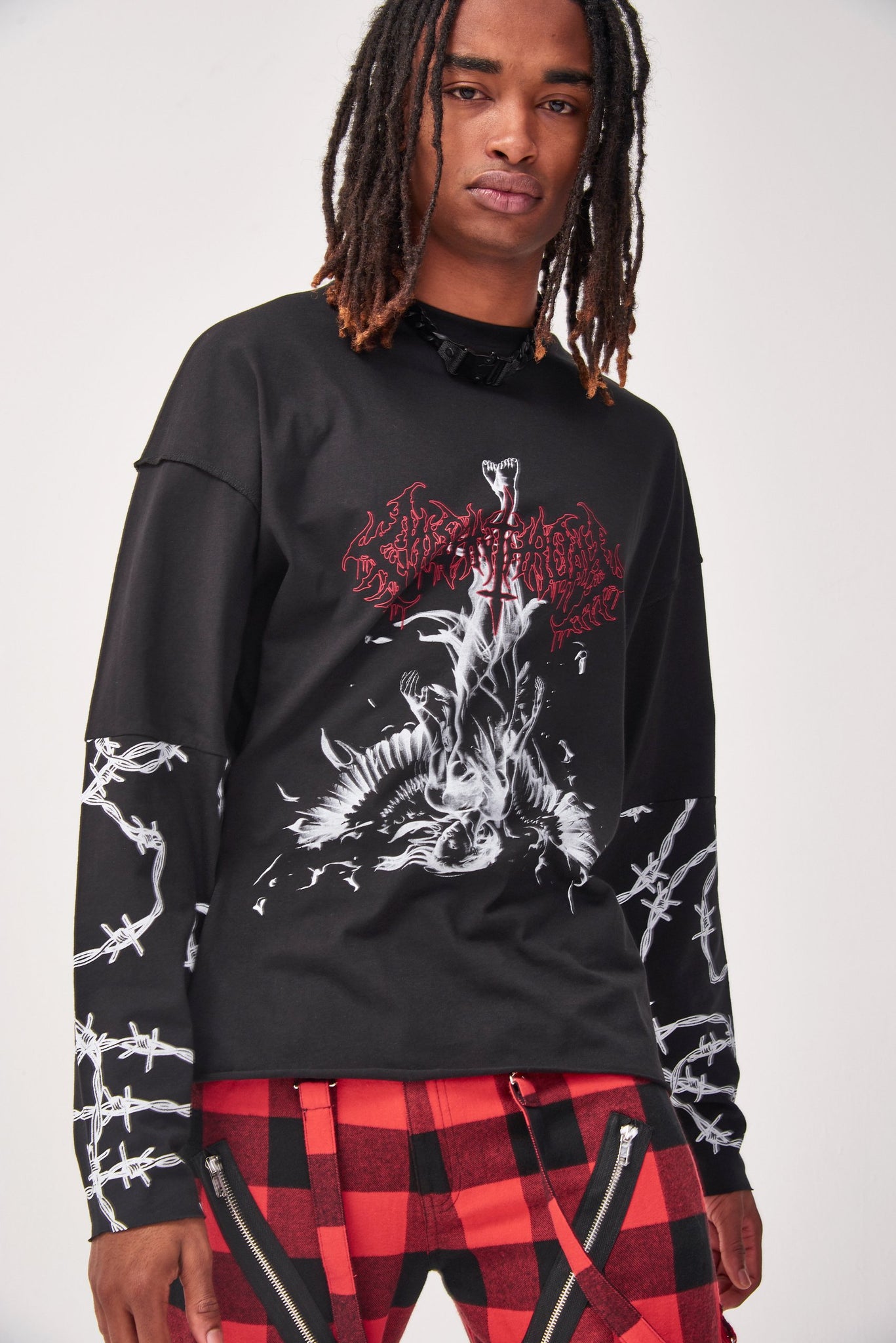 %text-1-start% Gothic Barbed Wire Print Long Sleeve T-shirt