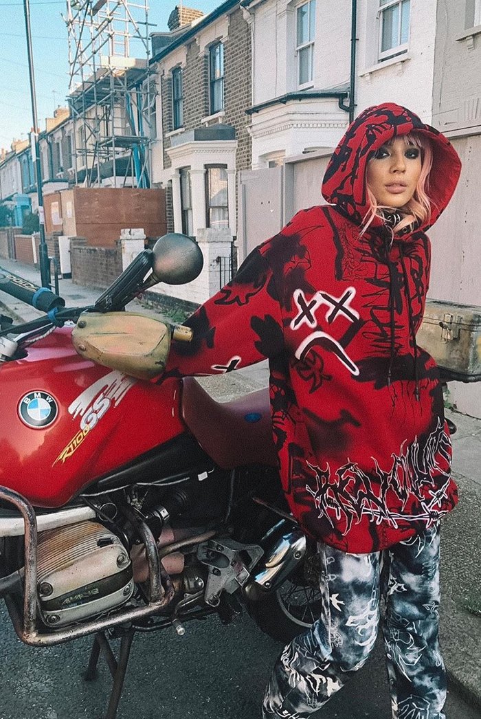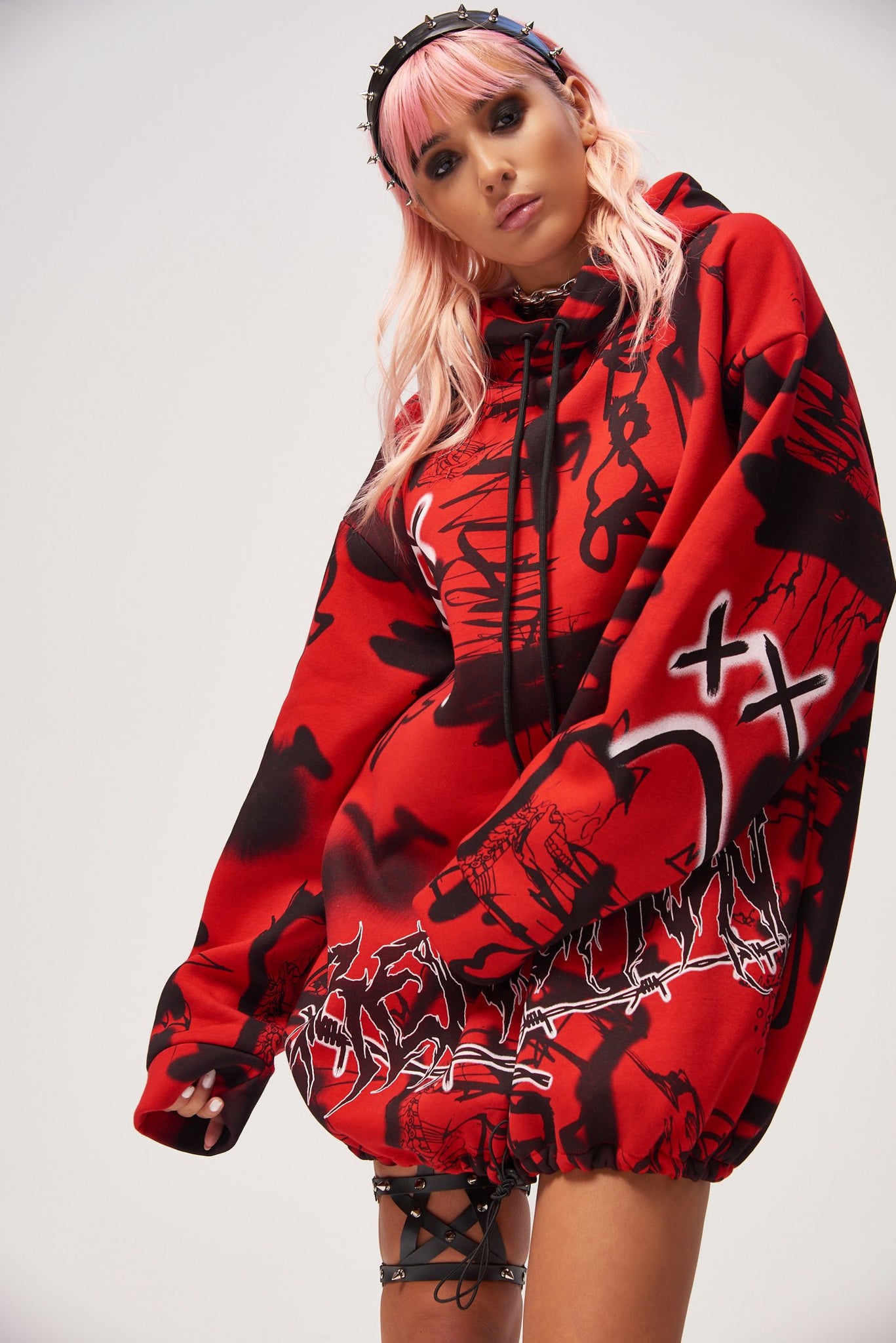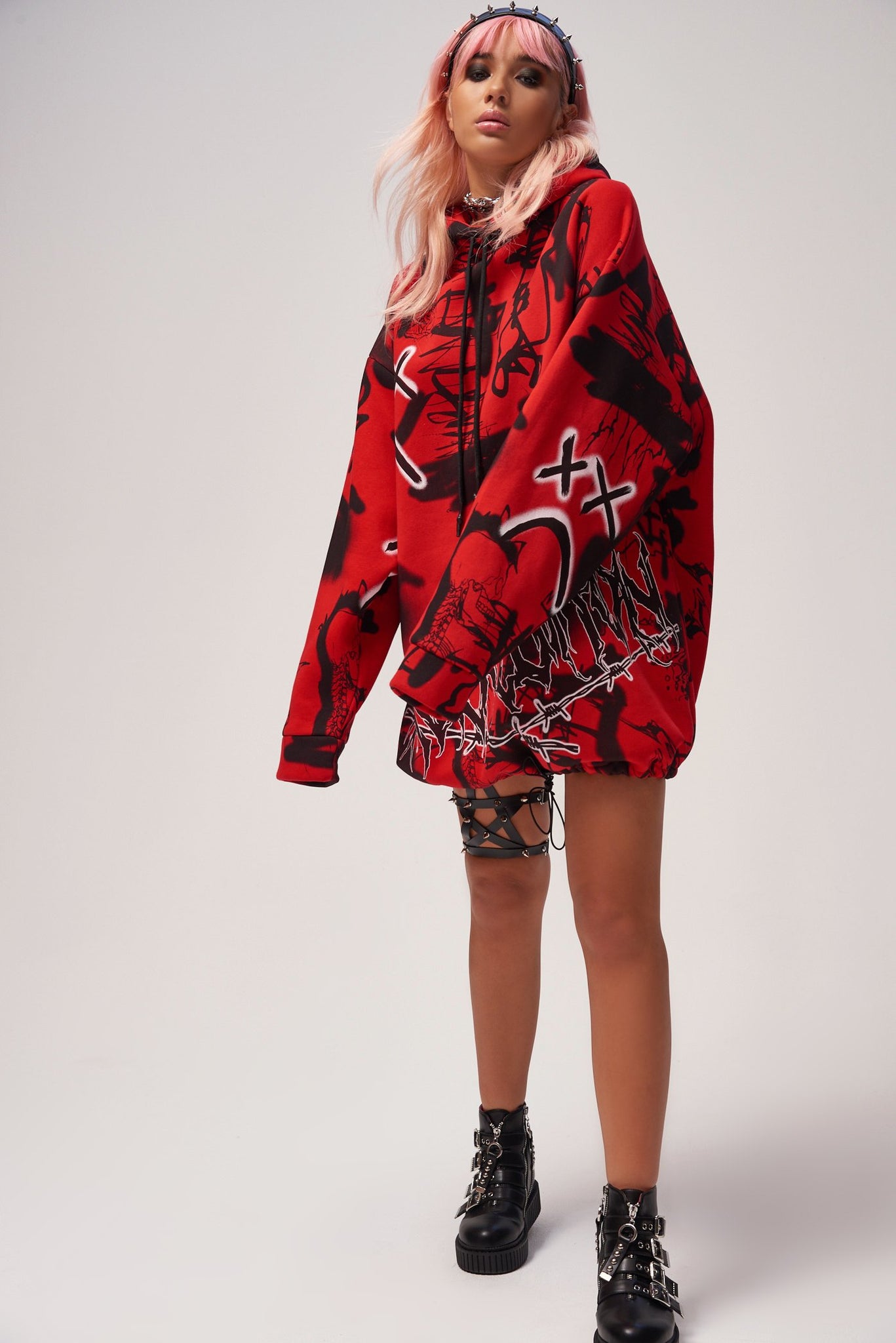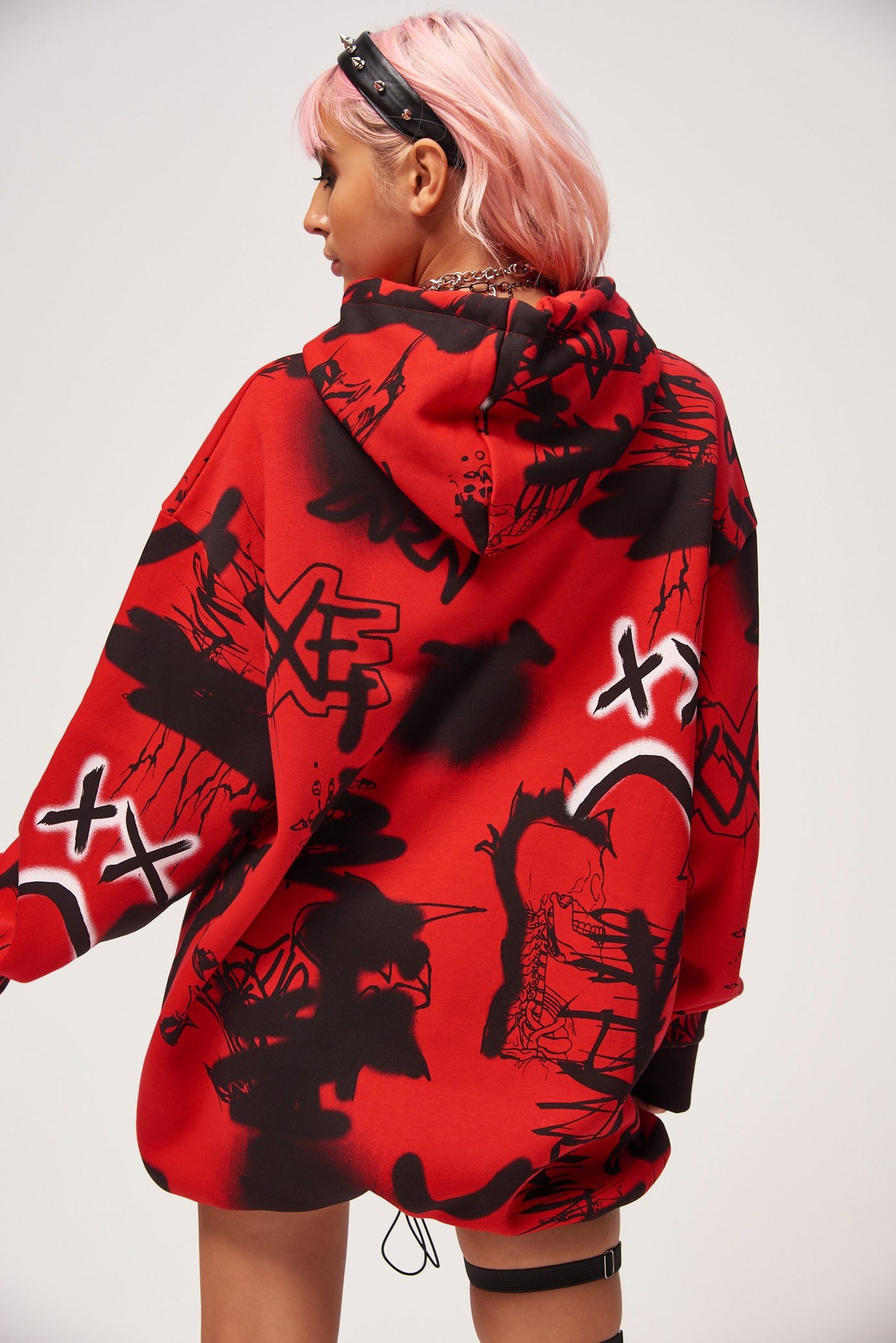 %text-1-start% Stay comfy in style rocking our graffiti print oversized hoodie dress!
