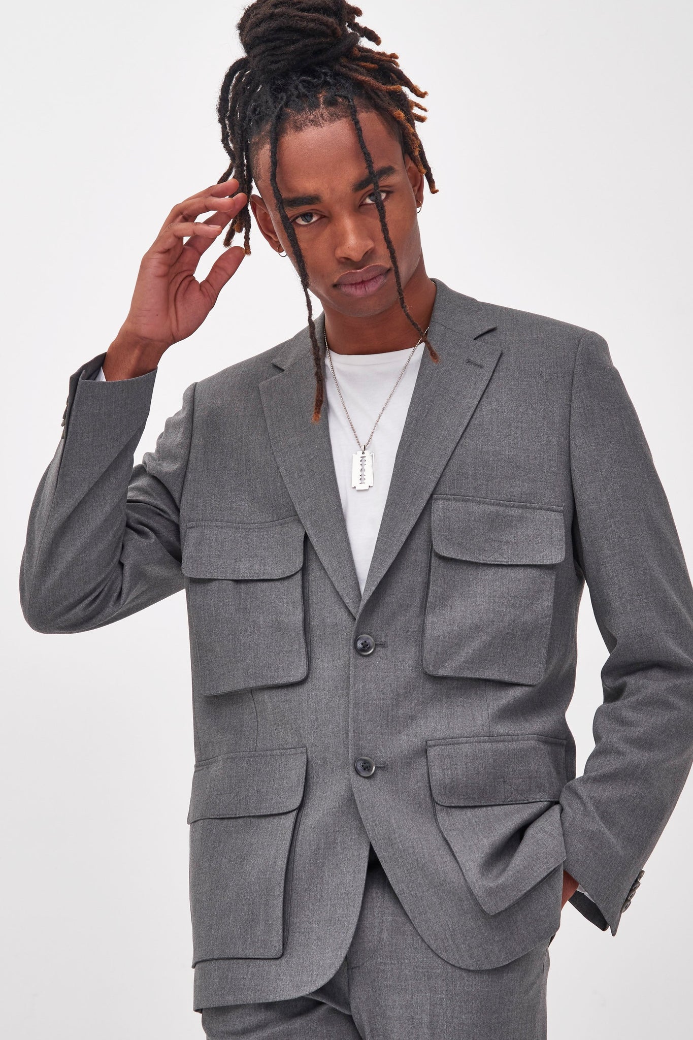 %text-1-start%Grey Utility Blazer