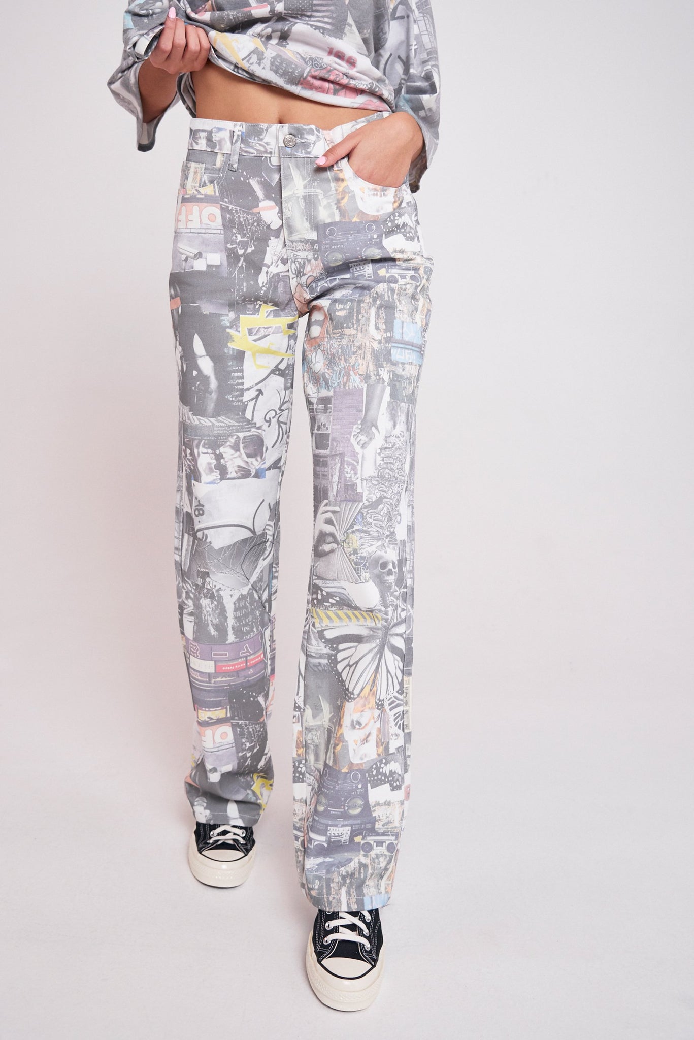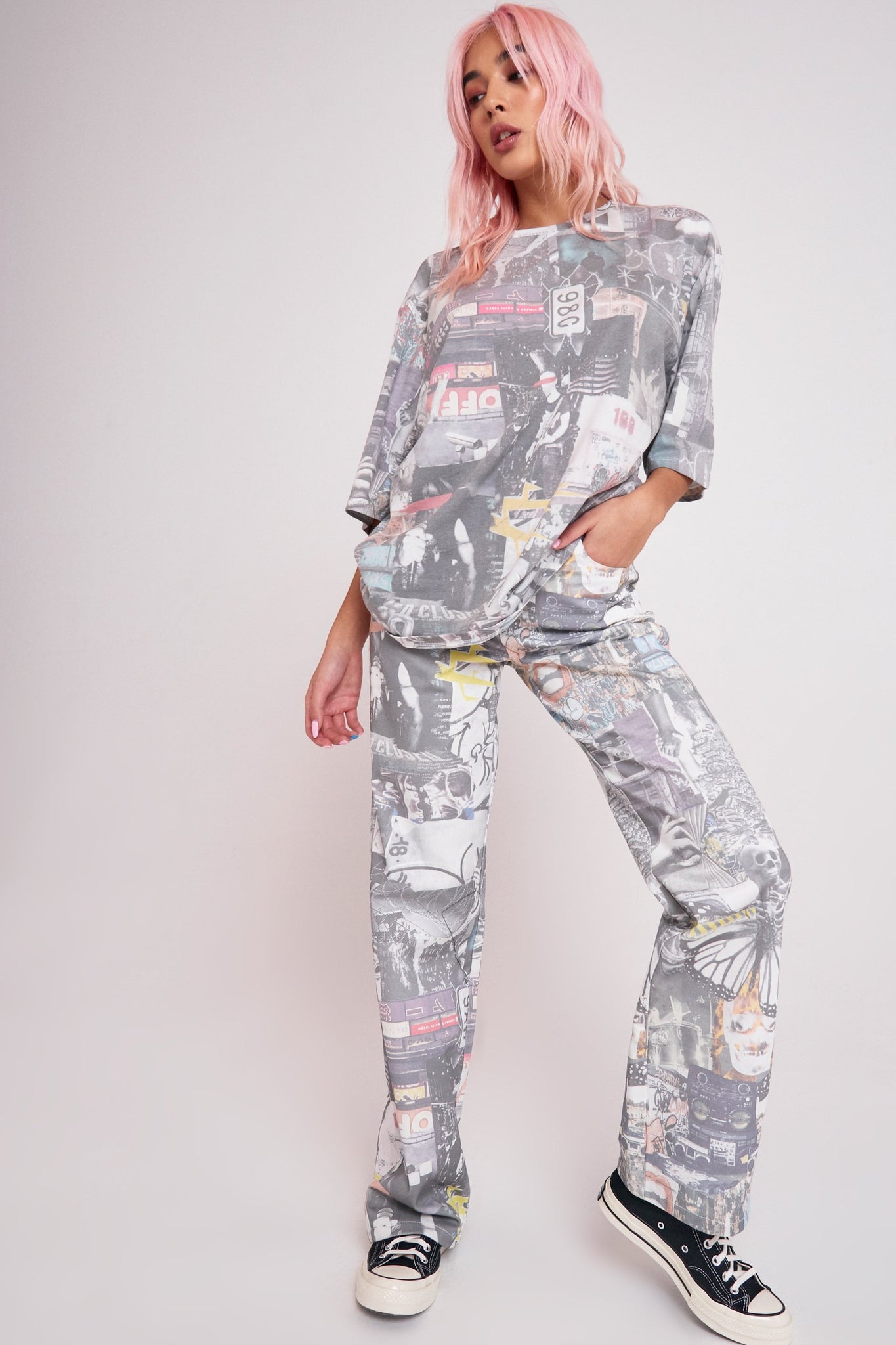 %text-1-start% Upgrade your wardrobe this season rocking our Mash Up Print Slouchy Jeans! Pair with the matching t-shirt for a kick-ass co-ord!