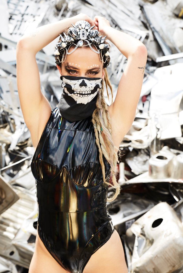 %text-1-start% Have heads turning rocking our super sassy black holographic high neck hot pant body!