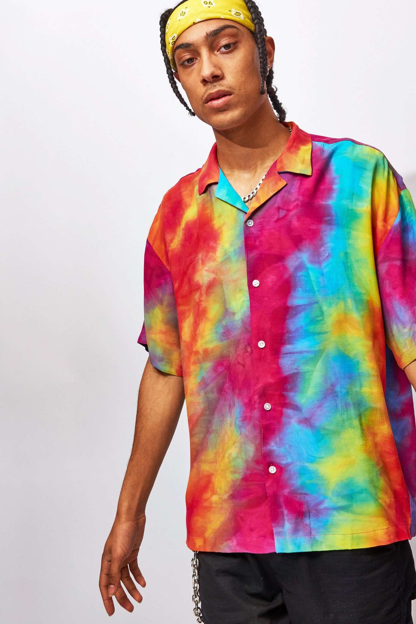 %text-1-start%Multi Tie Dye Print Revere Shirt