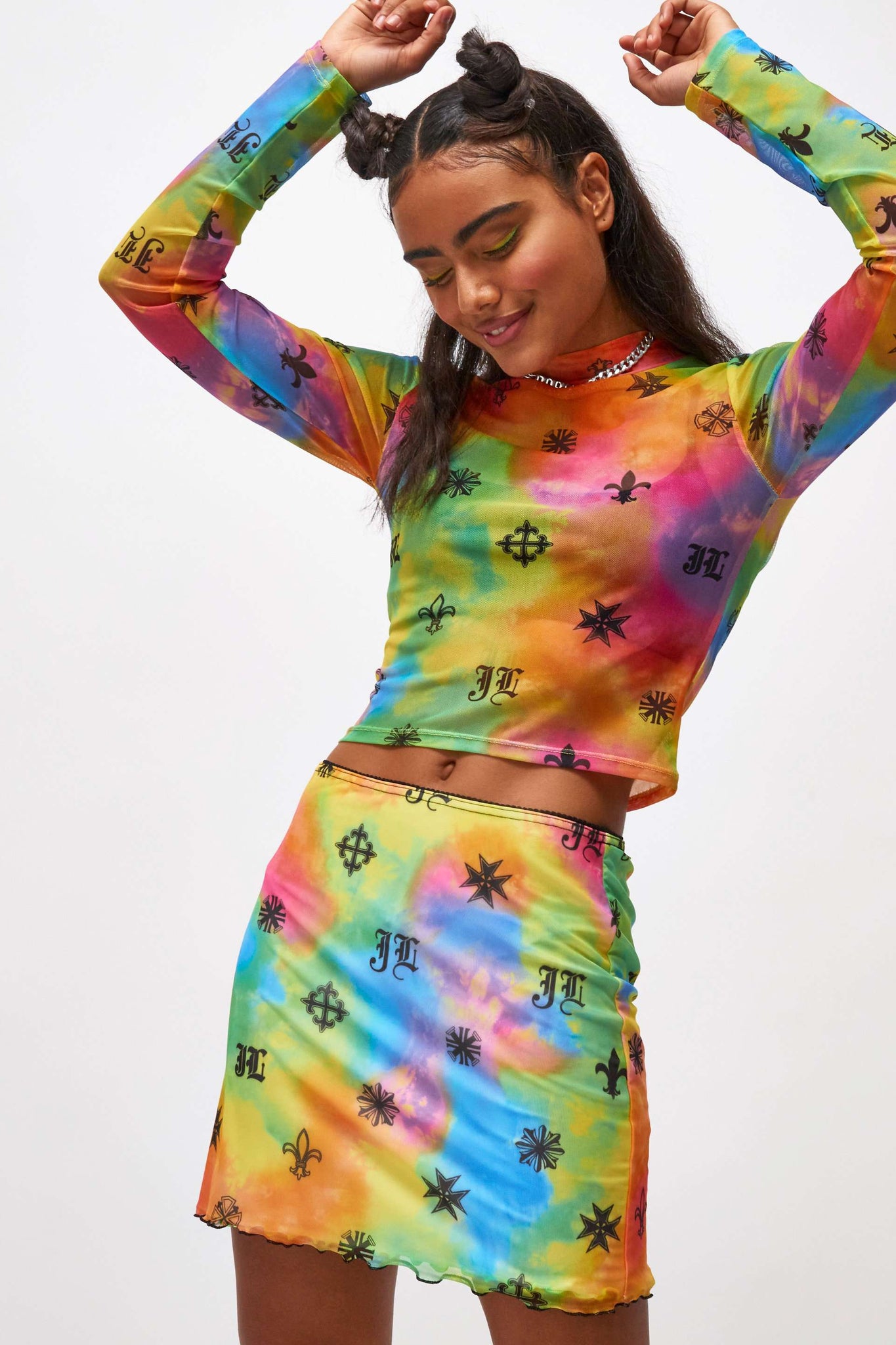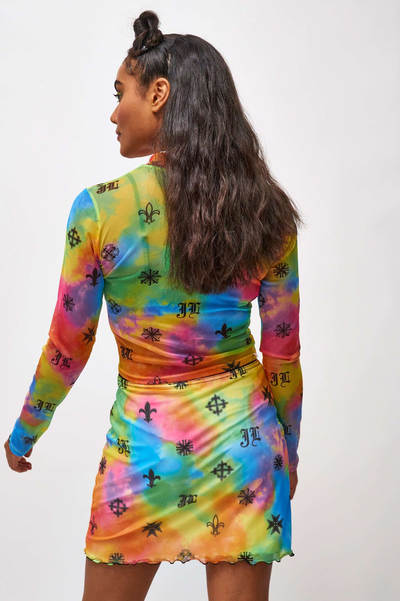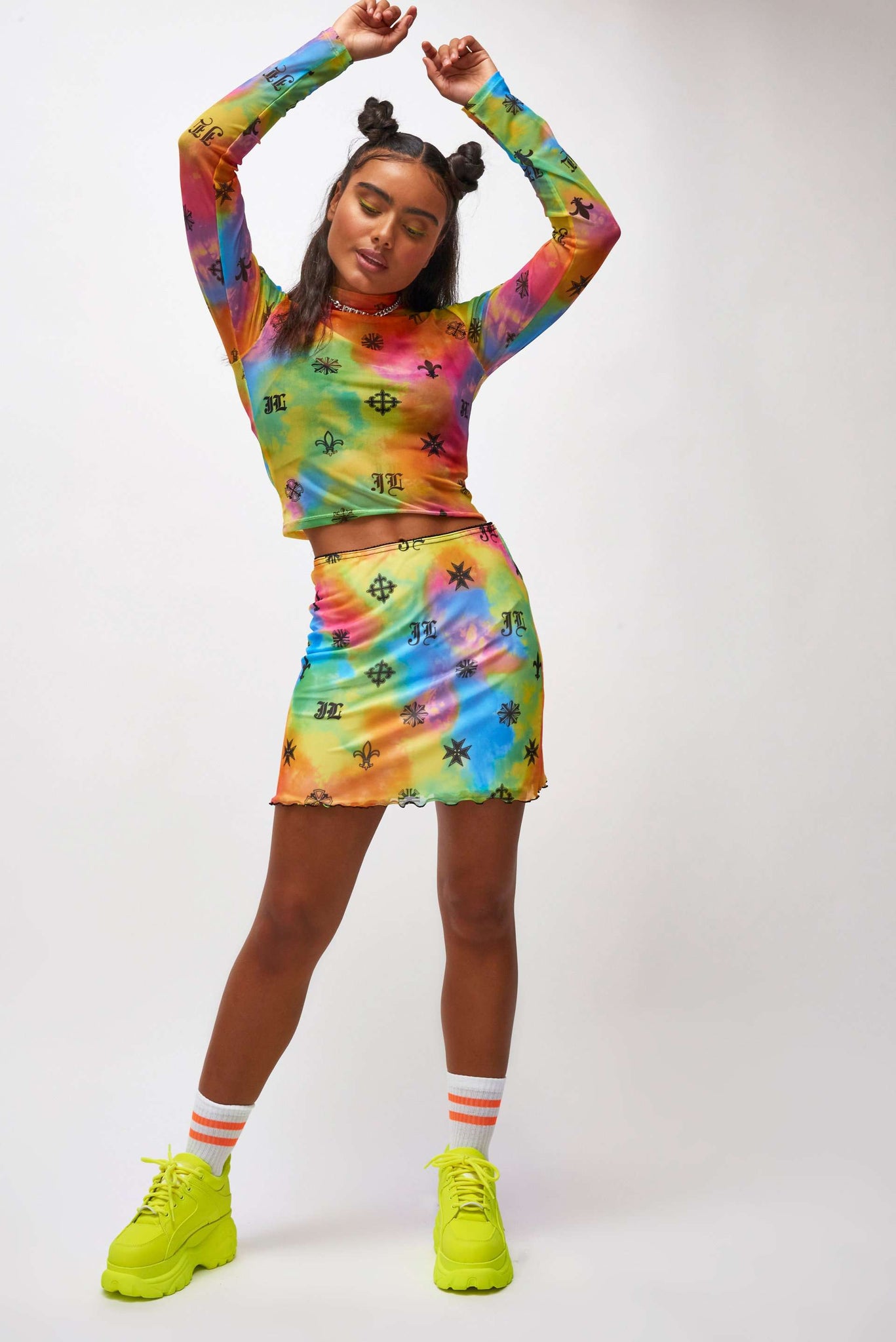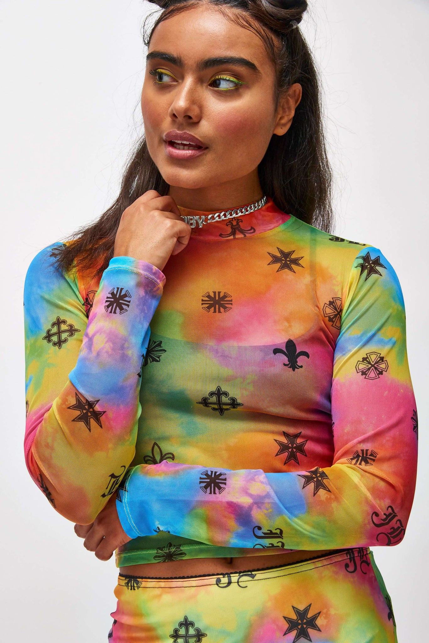 Are you a 90's girl? Or a nostalgic girl? Give some serious throwback vibes in our symbol print mesh top. Pair with matching skirt for a kick-ass co-ord!