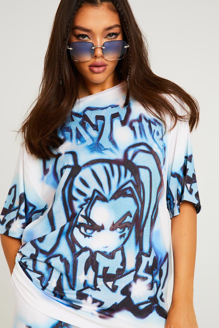 %text-1-start%Upgrade your wardrobe this season rocking our super cute not your angel graffiti print t-shirt!