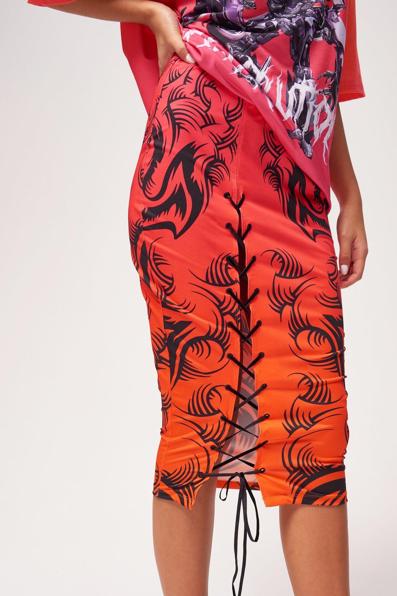 %text-1-start% Stand out in the crowd rocking our super cute ombre tribal print lace up midi skirt!