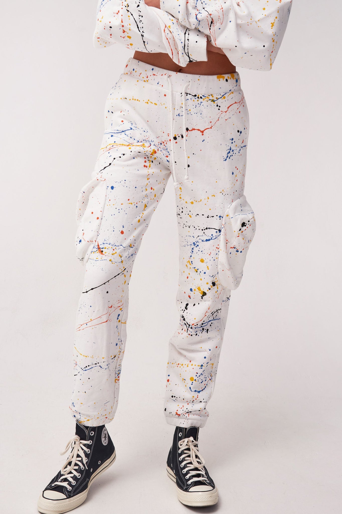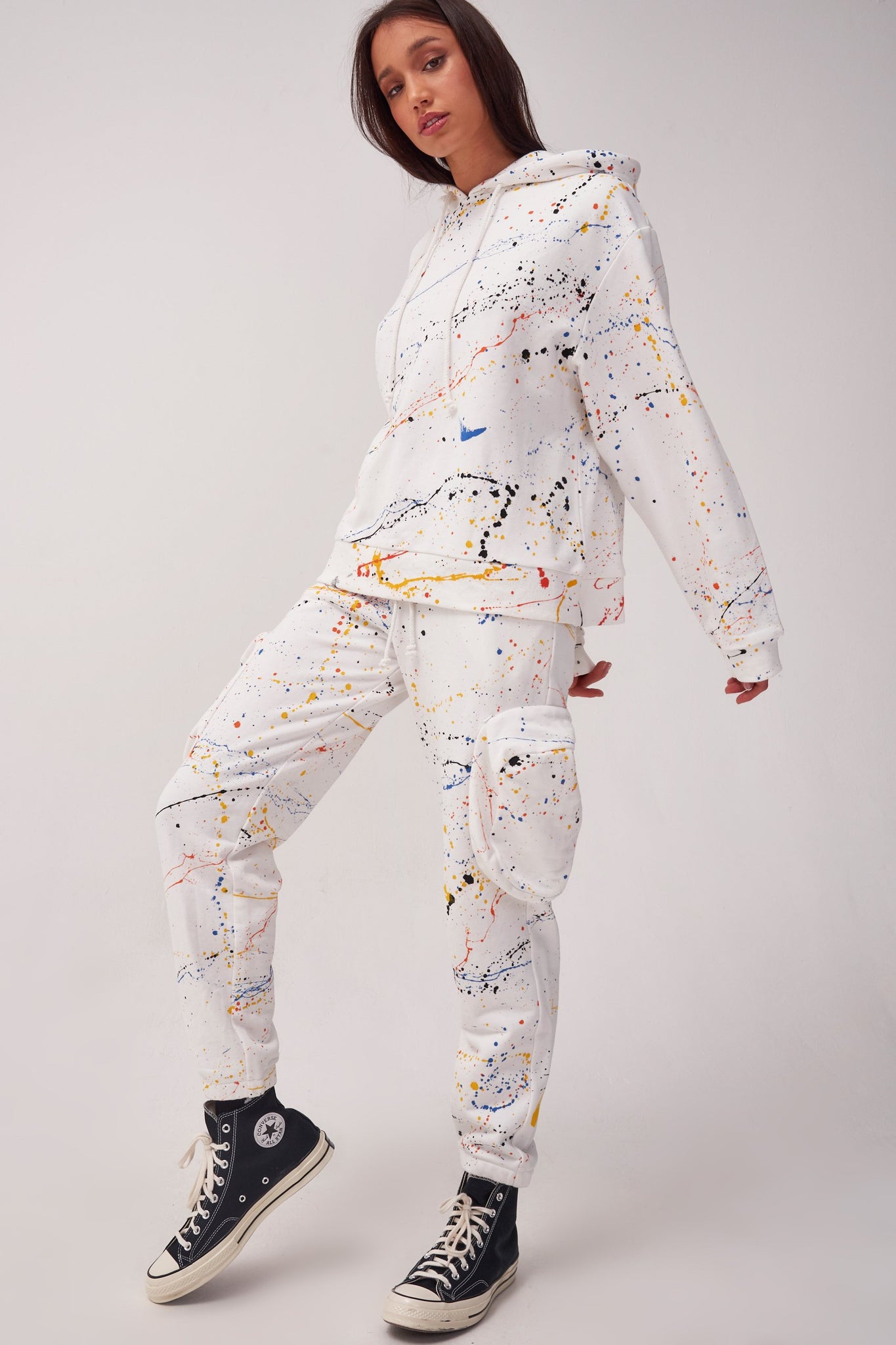 %text-1-start% Stay comfy in style rocking our paint splatter cuffed joggers! Pair with the matching hoodie for the ultimate comfy co-ord!