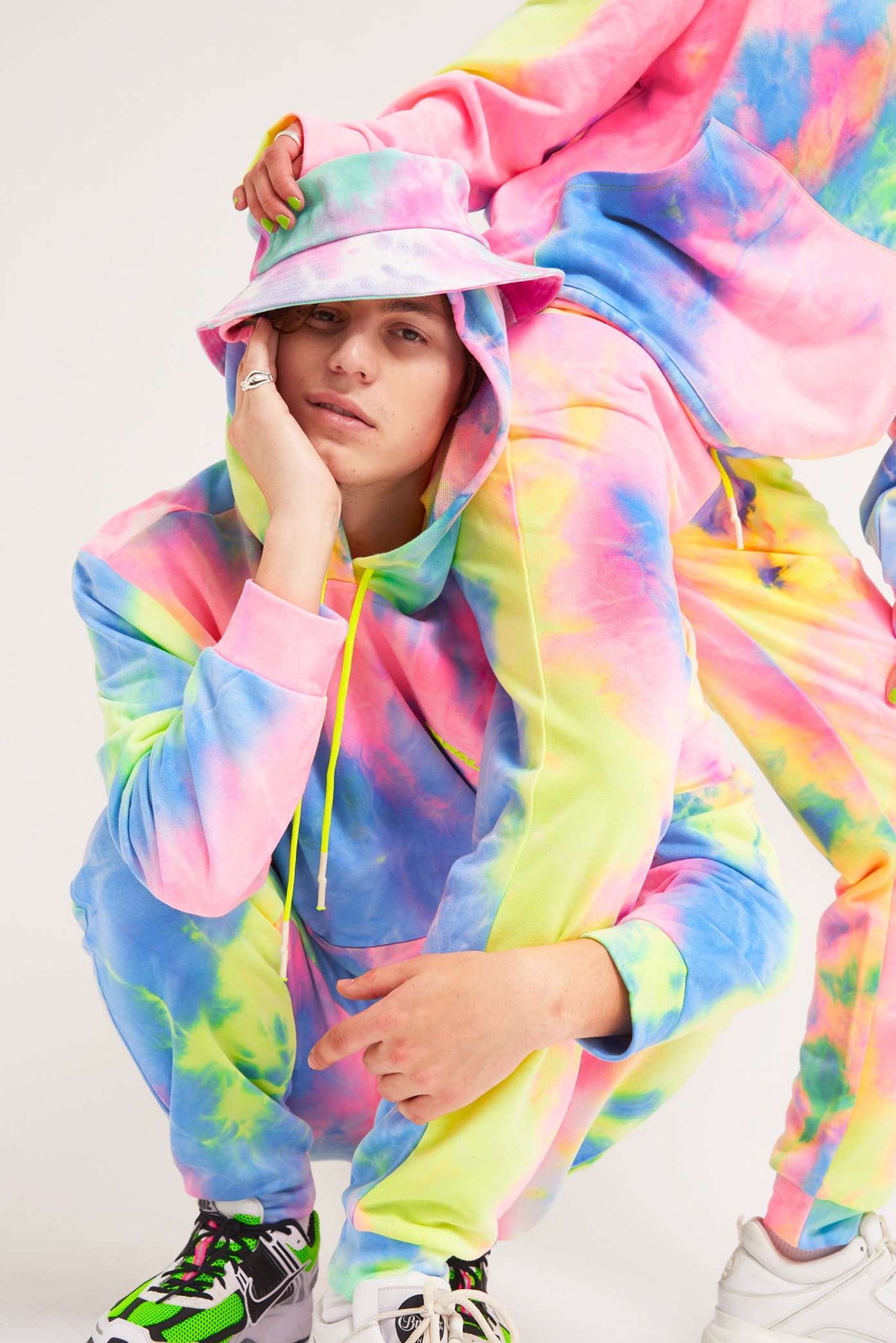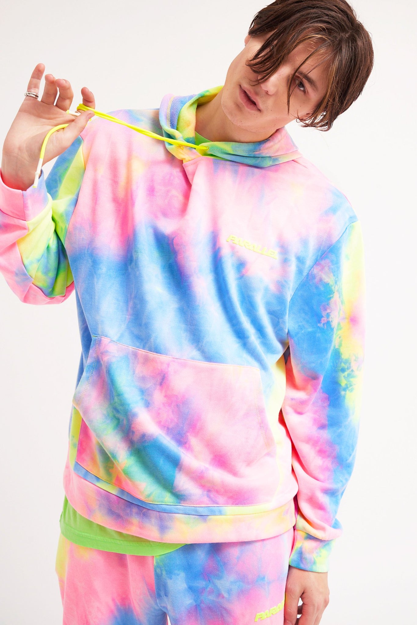 %text-1-start% Add some print to your wardrobe with our tie dye printed hoodie, pair with the matching joggers for a comfy co-ord!