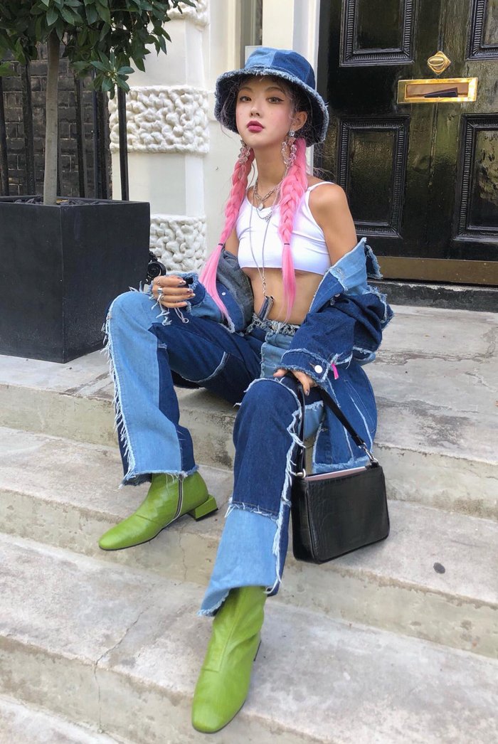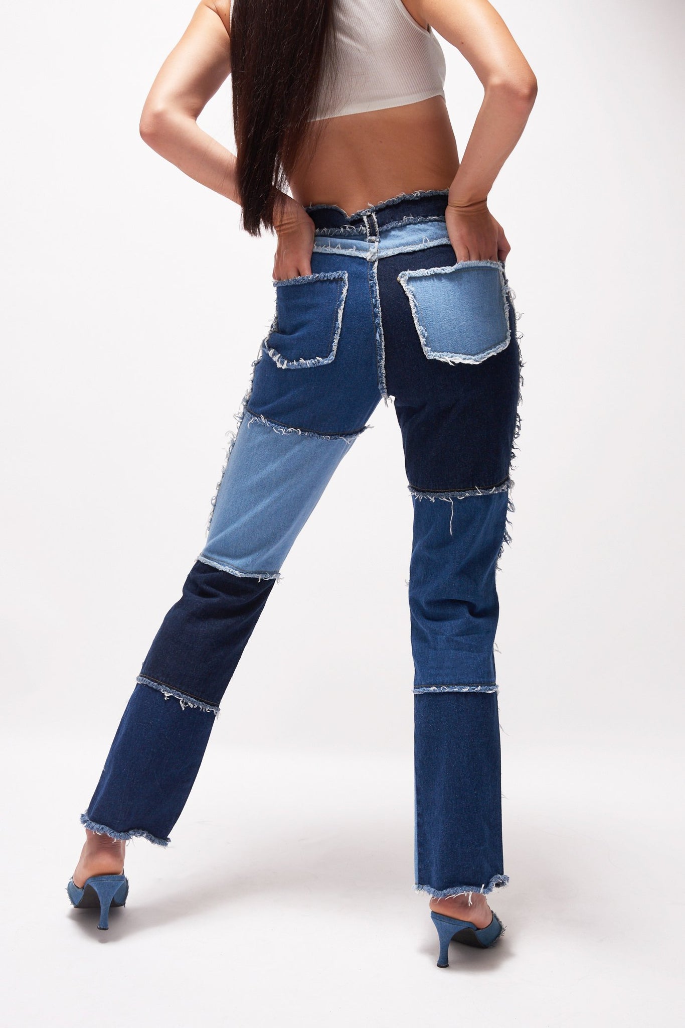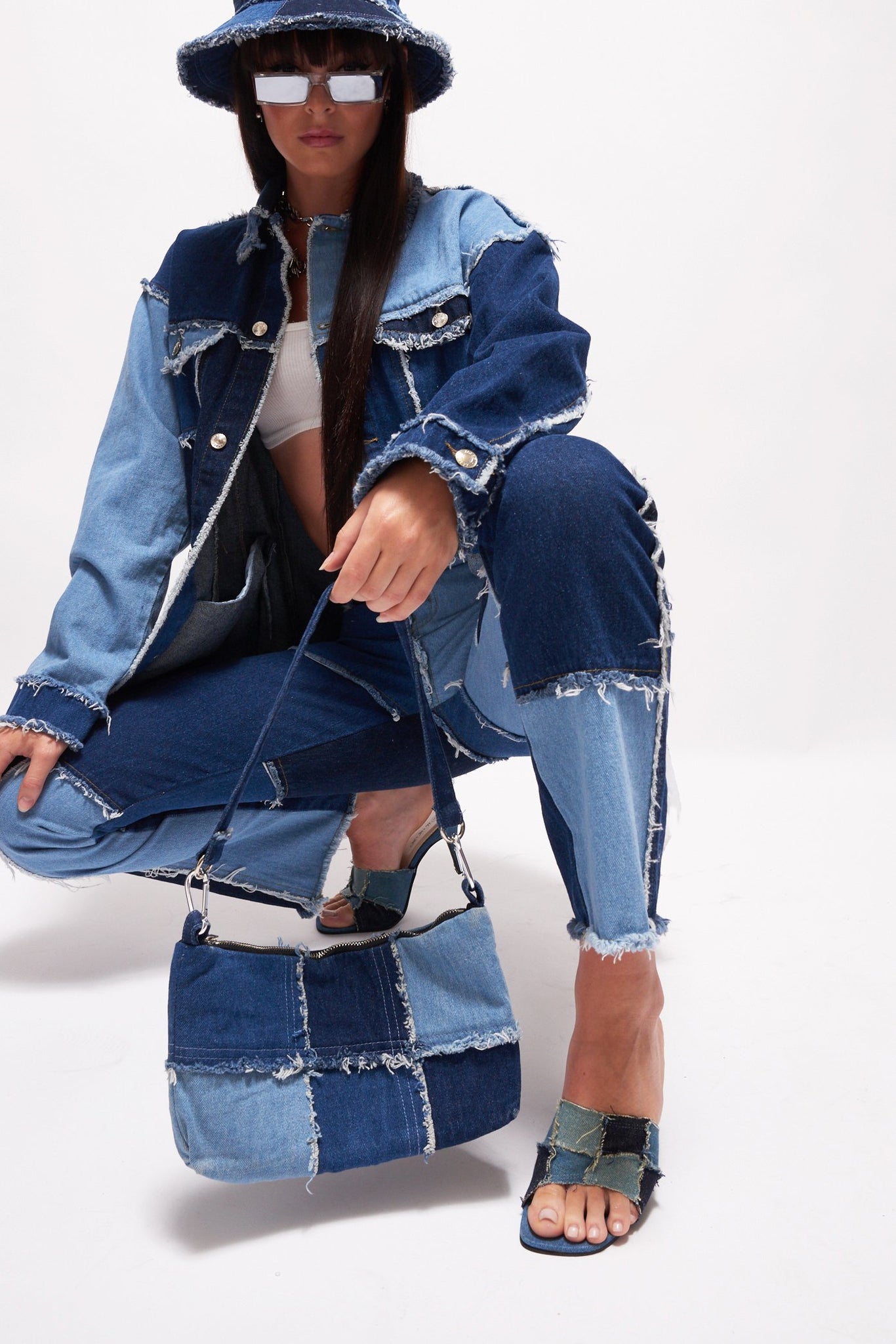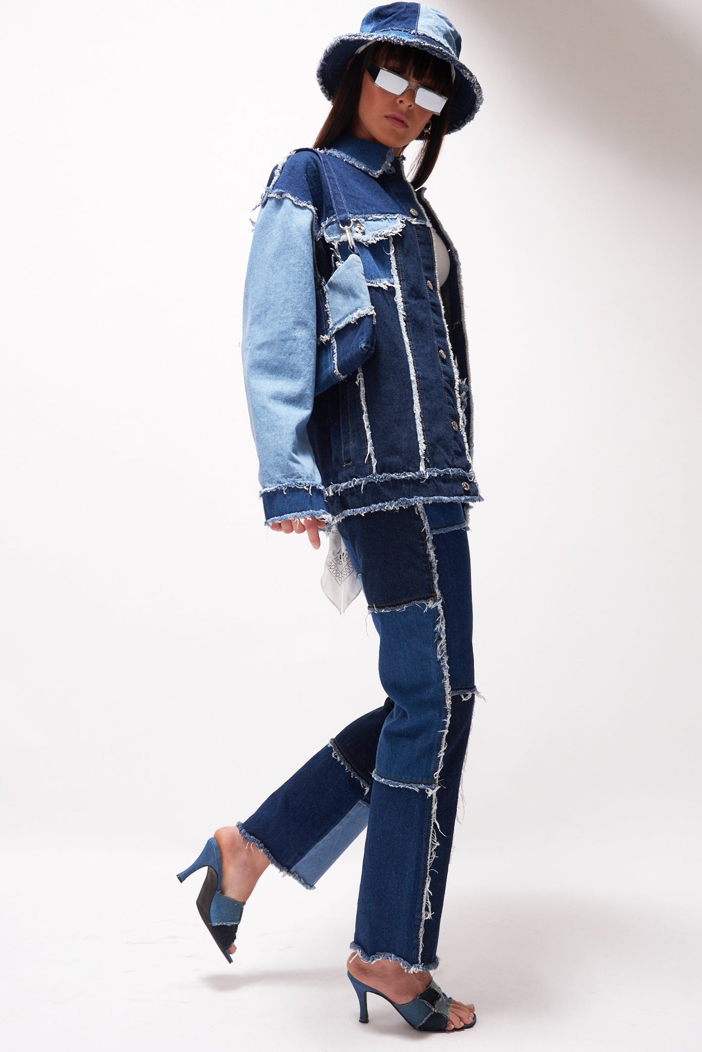 %text-1-start% Throw it back this season rocking our super cute patchwork boyfriend jeans, pair with the matching jacket & bucket hat for ultimate outfit goals!